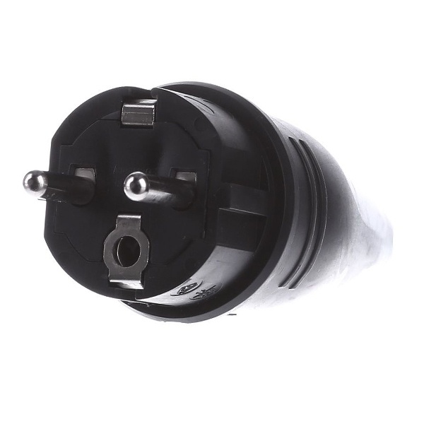 Модель выполнена в классическом формате с заземляющим контактом (2P+E), рассчитана на ток до 16 А и напряжение до 250 В, подходит для монтажа на кабель сечением 1,5 мм2. Черный цвет корпуса практичен в ежедневной эксплуатации и менее заметен в условиях активного использования.