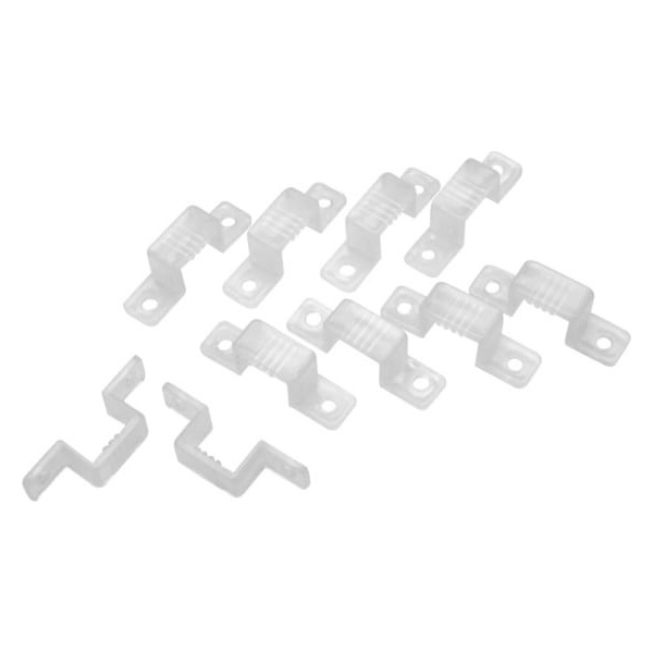 Монтажная клипса для LED ленты 220В шириной 17 мм обычно представляет собой пластиковую крепежную скобу, которая используется для крепления LED ленты к поверхности. Она имеет отверстия для крепления винтами или шурупами к стене, потолку или другой поверхности.