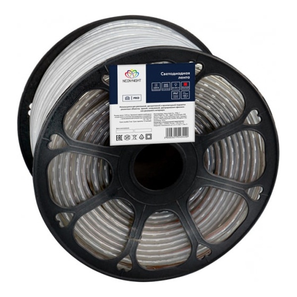 Лента работает от напряжения 220 В и имеет класс защиты IP67, что делает ее устойчивой к воде и пыли. Благодаря этому светодиодную ленту можно использовать как внутри помещений, так и на улице.