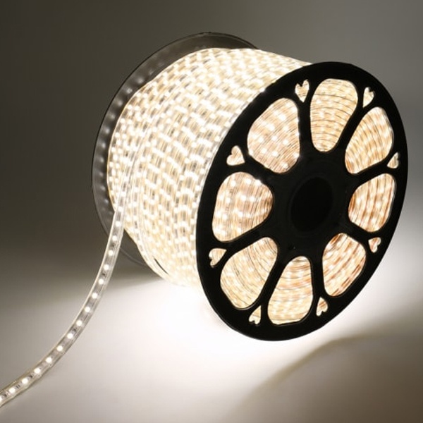 Лента работает от напряжения 220 В и имеет класс защиты IP67, что делает ее устойчивой к воде и пыли. Благодаря этому светодиодную ленту можно использовать как внутри помещений, так и на улице.