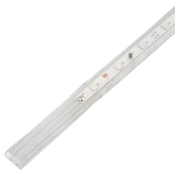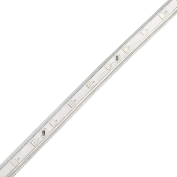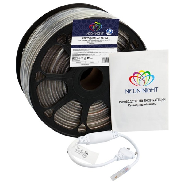 Лента работает от напряжения 220 В и имеет класс защиты IP67, что делает ее устойчивой к воде и пыли. Благодаря этому светодиодную ленту можно использовать как внутри помещений, так и на улице.