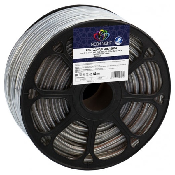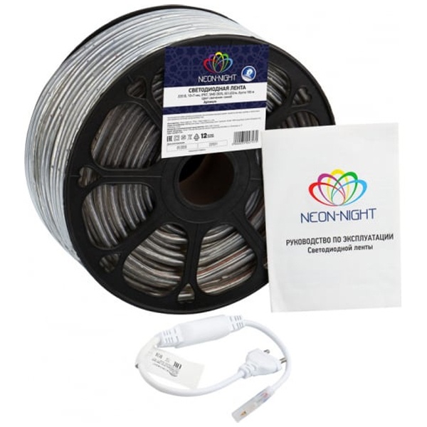 Лента работает от напряжения 220 В и имеет класс защиты IP67, что делает ее устойчивой к воде и пыли. Благодаря этому светодиодную ленту можно использовать как внутри помещений, так и на улице.