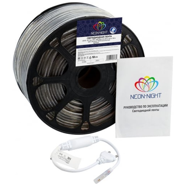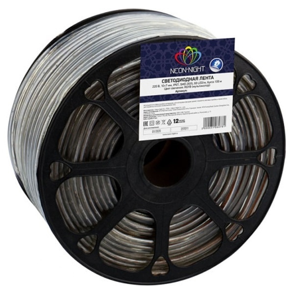 Лента работает от напряжения 220 В и имеет класс защиты IP67, что делает ее устойчивой к воде и пыли. Благодаря этому светодиодную ленту можно использовать как внутри помещений, так и на улице.