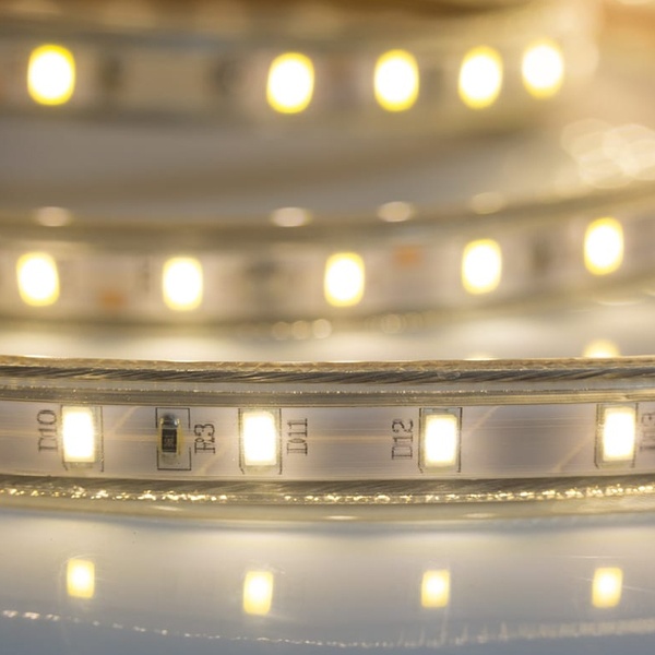 Светодиодная лента LED SMD 5730 60LED/м, теплая белая, 220В IP67 - это гибкая лента, которая оснащена высококачественными светодиодами SMD 5730. 60 светодиодов на метр обеспечивают яркое и равномерное освещение.
