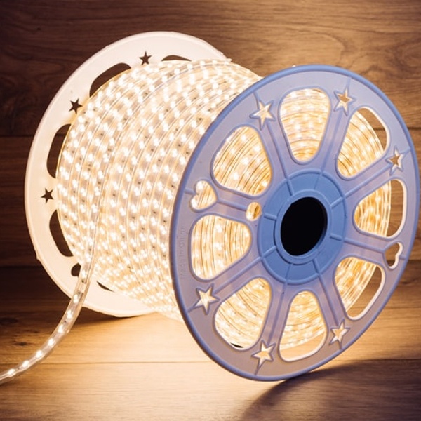 Теплый белый цвет светодиодов делает эту ленту идеальной для декоративного освещения в различных сценариях. Например, ее можно использовать для подсветки стен, потолков, фасадов зданий, садовых дорожек и т.д. Она также может использоваться в рекламных конструкциях, для создания ярких и привлекательных эффектов.