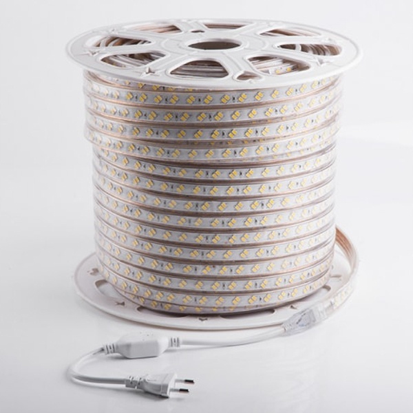 Лента работает от напряжения 220 В и имеет класс защиты IP67, что делает ее устойчивой к воде и пыли. Благодаря этому светодиодную ленту можно использовать как внутри помещений, так и на улице.