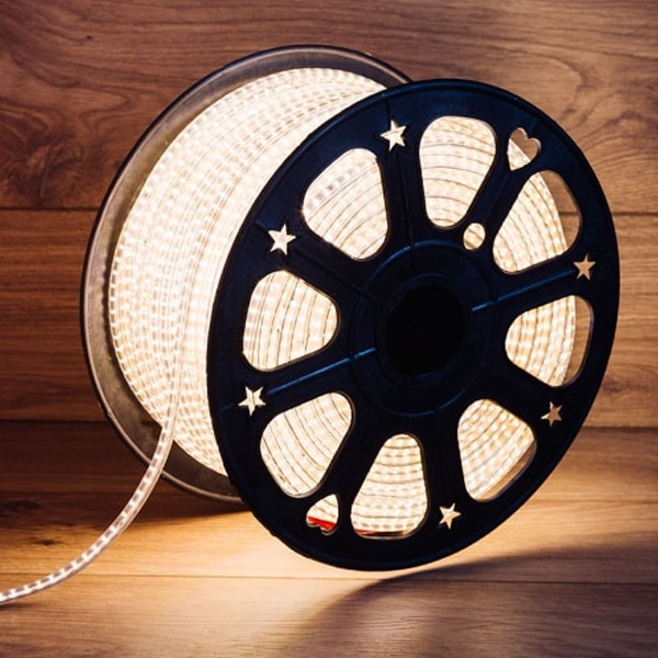 Теплый белый цвет светодиодов делает эту ленту идеальной для декоративного освещения в различных сценариях. Например, ее можно использовать для подсветки стен, потолков, фасадов зданий, садовых дорожек и т.д. Она также может использоваться в рекламных конструкциях, для создания ярких и привлекательных эффектов.