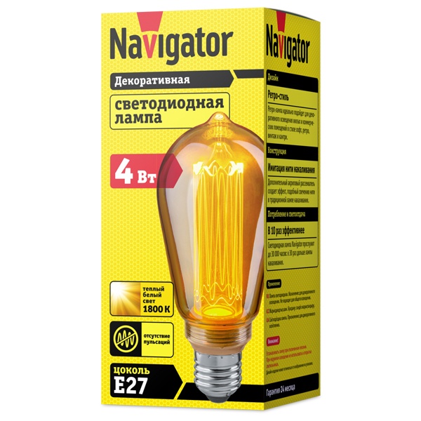 Декоративная светодиодная ретро-лампочка ST64 Навигатор, мощностью 4 Ватта, с цоколем E27, теплый свет, золотистая колба 14232