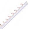 Соединительные шины представляют собой медные пластины, зафиксированные в корпусе из диэлектрического, не поддерживающего горения материала. Они обеспечивают надежное электрическое соединение, удобство монтажа и компактность размещения в распределительных устройствах. Стандартная длина шин составляет 1 метр, при этом возможно их укорочение или наращивание в зависимости от требований проекта. Конструкция обеспечивает высокий уровень электрической и механической прочности, а также устойчивость к воздействию температур и токовых нагрузок.