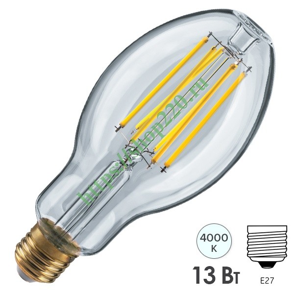 Светодиодная лампа высокой мощности с нитевидными светодиодами, мощностью 13 Ватт с цоколем E27, нейтральный белый свет 14338