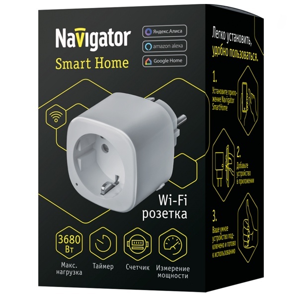 • Умная розетка Navigator NSH-ST-01-WiFi 3680Вт 16А 100-240В 50/60Гц