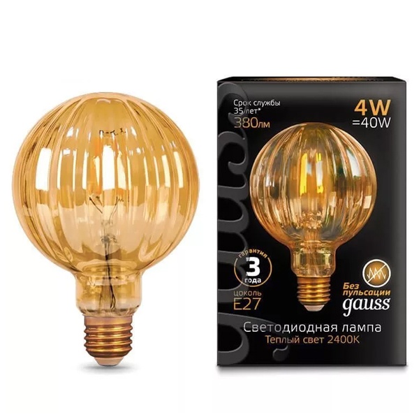 • Лампа Gauss Filament Шар G100 4W 380lm 2400К Е27 golden Baloon LED
