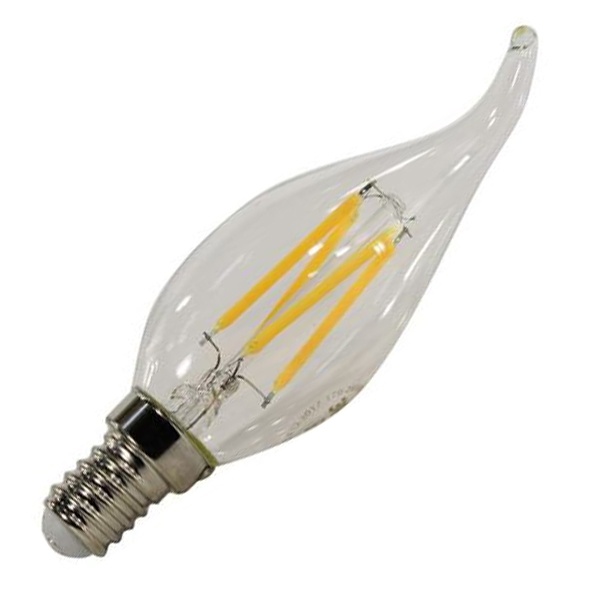 Филаментная лампочка формы свеча на ветру с нитевидными светодиодами, мощностью 7 Ватт, с цоколем E14, теплый свет, прозрачная колба 15011045087