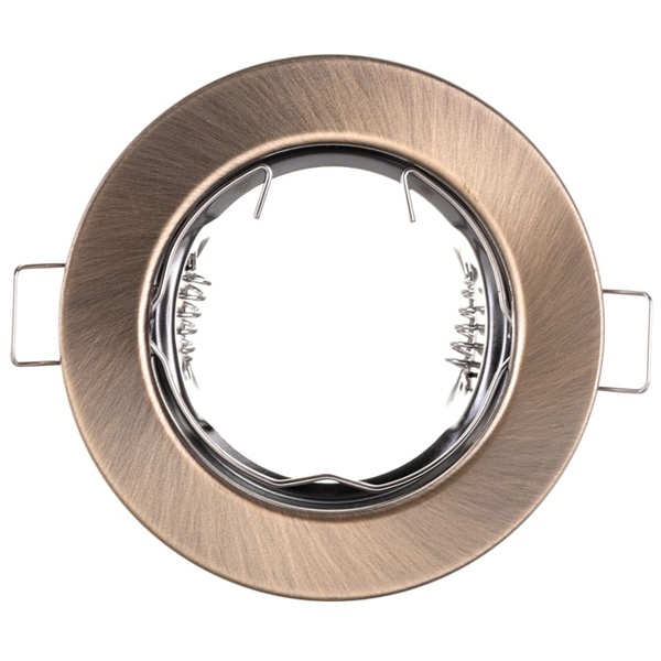 Встраиваемый круглый светильник Ферон DL10 под лампу MR16 с цоколем G5.3 мощностью до 50 Ватт, цвета античное золото. 15206