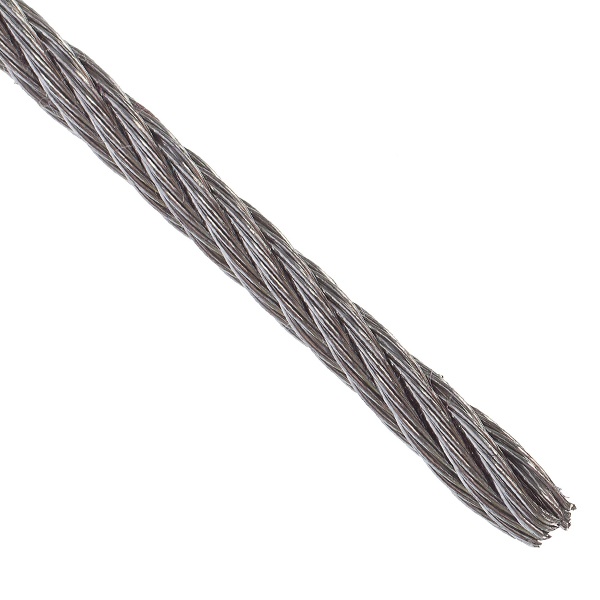Свивка троса: 6х7+FC состоит из шести плетеных канатов, устойчивых к разрывам и другим повреждениям, каждый из которых в свою очередь сплетен из семи тонких стальных прутков, а буквы FC обозначают органический материал сердечника. Все прутки покрыты белым цинком, который исключает поражение троса коррозией.