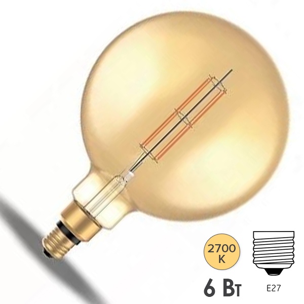 Филаментная ретро лампочка Гаусс шар с нитевидными светодиодами в золотой колбе, мощностью 6 Ватт, с цоколем E27, теплый свет 154802118