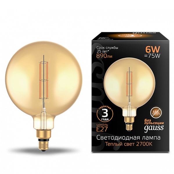 • Лампа Gauss Filament G200 6W 2700К 890lm Е27 golden straight LED