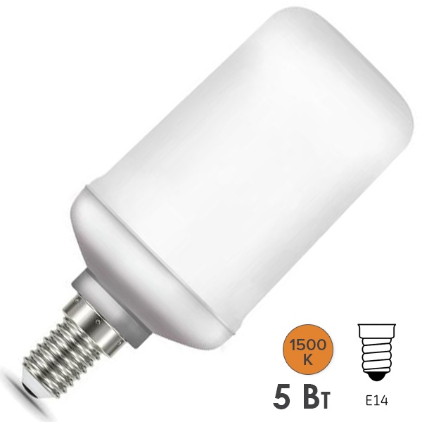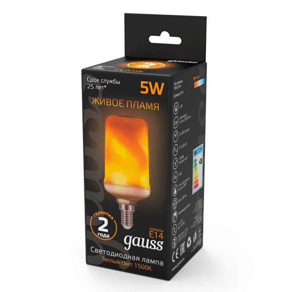 Декоративная светодиодная лампа Гаусс T65 с типом свечения эффект огня или режим ночник, мощностью 5 Ватт, с цоколем E14, теплый желтый свет 157401105
