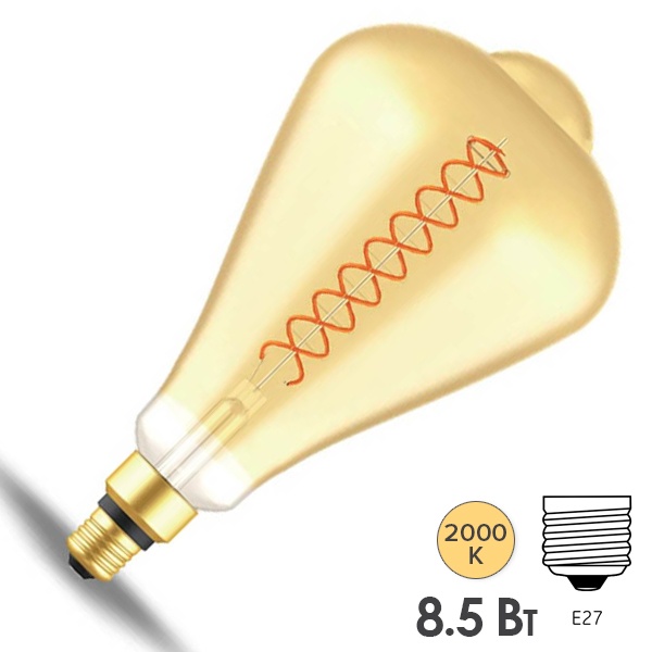 Филаментная, декоративная лампочка Гаусс, мощностью 8,5 Ватт с цоколем E27, теплый свет, золотистая колба 157802105