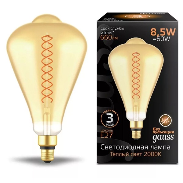 Лампа Gauss Filament ST164 8.5W 2000К 660lm Е27 golden flexible LED 157802105