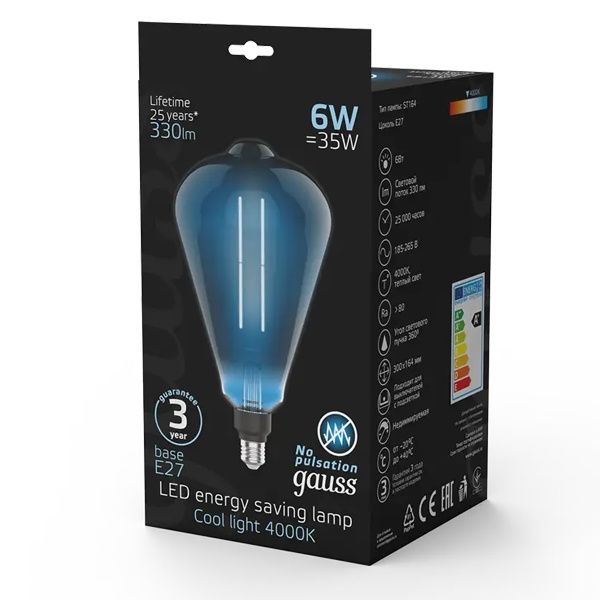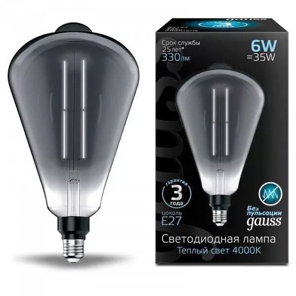 • Лампа филаментная светодиодная Gauss ST164 6W 4200K E27 330Lm серый прямая нить