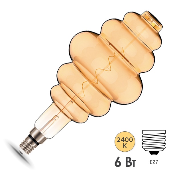Филаментная, декоративная лампочка Гаусс, мощностью 6 Ватт с цоколем E27, теплый свет, золотистая, фигурная колба 158802006