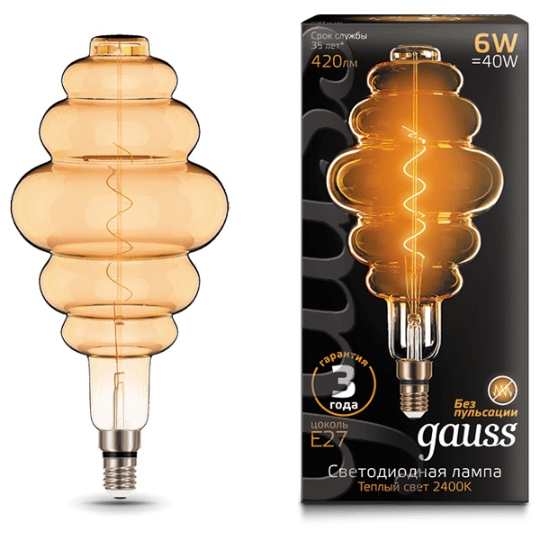• Лампа Gauss Filament Honeycomb 6W 2400К 420lm Е27 golden flexible LED