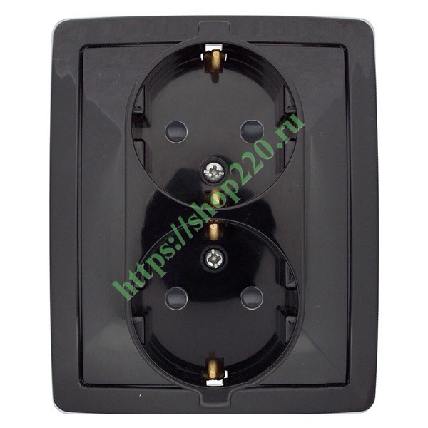 1590451-032 Розетка двойная с заземлением Schuko с защитными шторками винтовой зажим16А Simon 15, черный глянец