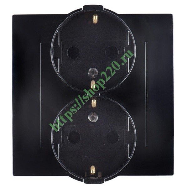 1590459-032 Розетка двойная с заземлением Schuko 16А 250В винтовой зажим Simon 15, черный глянец