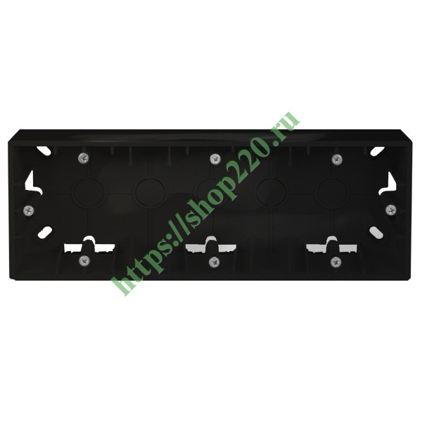 Здесь, предлагается коробка с максимальным количеством установочных мест – 3 модуля. Компактность блока обусловлена отсутствием перегородок между постами и оригинальной конфигурацией суппортной пластины.
