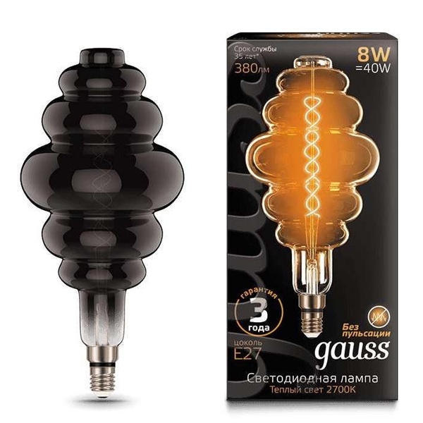 Лампа филаментная светодиодная Gauss Honeycomb 8W 2700K 380Lm E27 серый спираль — декоративная LED-лампа с филаментной нитью и выразительной колбой в стиле Honeycomb. Мягкое теплое свечение 2700K создает уютную атмосферу, а спиральный филамент и серый оттенок стекла делают лампу заметным элементом интерьера даже в выключенном состоянии. Подходит для светильников с патроном E27 и рассчитана на повседневное домашнее применение в помещениях, где важны комфорт и дизайн.