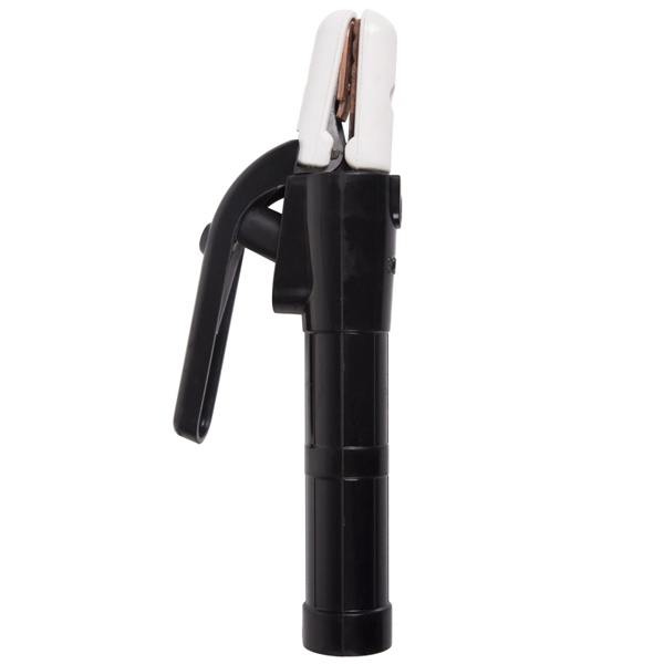 Ручка держателя выполнена из прочного термостойкого пластика с высокими диэлектрическими свойствами, устойчивого к механическим повреждениям и воздействию высоких температур. Эргономичная форма обеспечивает комфортный хват и дополнительную защиту сварщика во время работы.