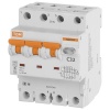 АВДТ класса АС серии ДИФ-103 от производителя DEKraft Schneider Electric представляет собой устройство со встроенной защитой от сверхтоков, которое используется в трехфазных электросетях переменного тока с частотой 50 Герц и напряжением до 415 Вольт. Оно выполняет защитную функцию и обеспечивает 3 типа защиты: от короткого замыкания, перегрузок и возникновения утечки тока. Принцип действия: обнаружение дифференциального тока, сравнение с током срабатывания и отключение защищаемой цепи при превышении заданного значения. Данная модель рассчитана на токовую нагрузку 32 Ампера и обладает чувствительностью в 100 милиампер. Она гарантирует защиту от возгорания в следствии тока утечки. АВДТ обладает высокой коммутационной способностью в 6000 Ампер и уставкой типа C. Компактный прибор с 4-мя полюсами 3Р+N и шириной 4 модуля крепится на DIN-рейку. На лицевой части есть тестовая кнопка для периодической проверки работоспособности дифавтомата, а также рукоятка управления с 2-мя позициями и индикацией положения контактов. Аппарат класса АС защищает только от синусоидальных переменных токов утечки и применяется для типовых нагрузок. Областью применения выступают распределительные щиты и силовые установки в небольших административных и жилых зданиях. Габаритные параметры: ширина – 72 мм, высота – 85 мм, глубина – 80 мм.
