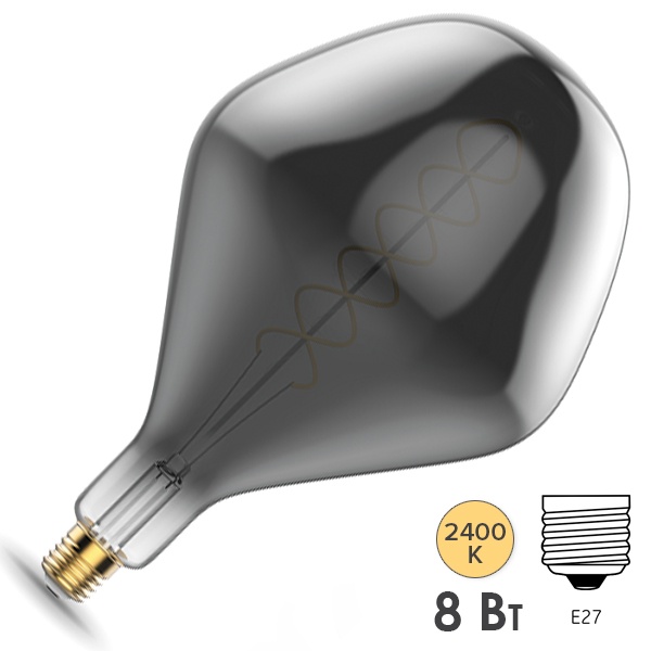 Филаментная, декоративная, фигурная ретро лампа Гаусс с нитевидными светодиодами, мощностью 8 Ватт, с цоколем E27, теплый желтый свет, колба с черно-графитовым напылением 163802008