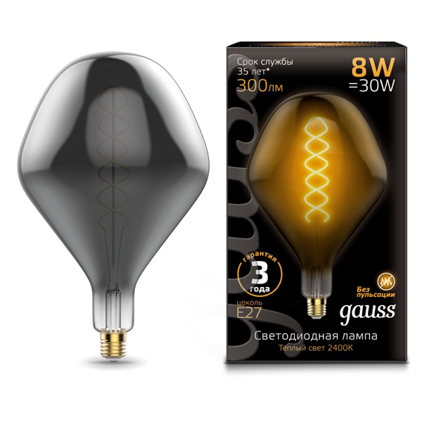 • Лампа Gauss Filament SD160 8W 2400К 300lm Е27 gray flexible LED