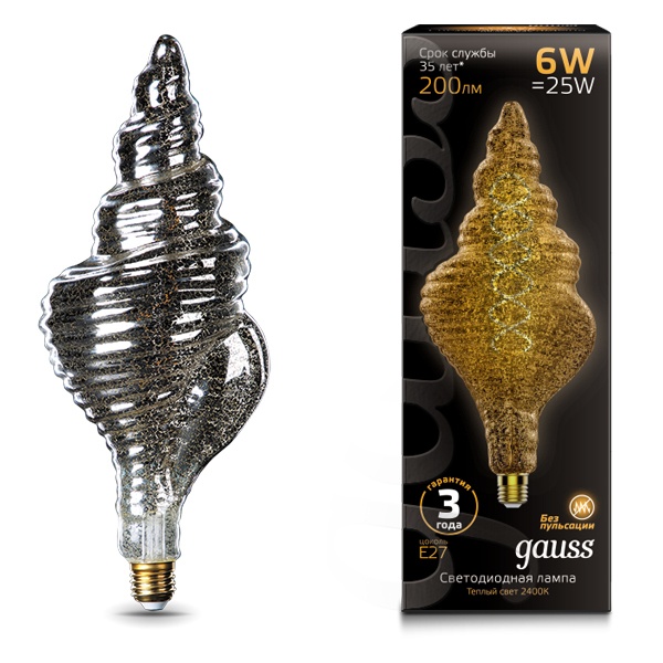 • Лампа филаментная светодиодная Gauss TL120 6W 2400K E27 200Lm серый спираль