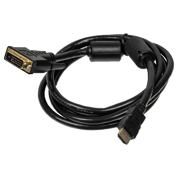 Шнур HDMI - DVI-D gold 2М с фильтрами REXANT предназначен для передачи цифрового видеоизображения высокого разрешения и многоканального аудио сигнала. Используется для совместной работы устройств, имеющих разъемы DVI-D и HDMI: проекторы, телевизионные аппараты, компьютеры и ноутбуки, мультимедийные проигрыватели и других видеоустройствах. С одной стороны располагается штекер разъема HDMI (High-Definition Multimedia Interface - интерфейс для мультимедиа высокой чёткости), а с другой штекер разъема DVI (Digital Visual Interface, сокр. DVI (англ. цифровой видеоинтерфейс)). Отличительной особенностью является наличие ферритовых фильтров, которые увеличивают индуктивность проходящего через него участка провода в несколько сотен раз, это обеспечивает подавление помех высокой частоты. Ферритовые кольца на шнуре используются как дополнительные внешние фильтры и обеспечивают воспроизведение абсолютно точного оригинального сигнала. Для производства жил используется только первичная, технически чистая медь (99%). На контакты разъемов нанесен слой золота по технологии вакуумного напыления, обеспечивающий повышение качественных показателей изображения и звука, а также отсутствие помех при передаче сигналов. Штекеры выполнены из легкого и прочного пластика. Длина шнура составляет 2 метра. Для бережной транспортировки и защиты от загрязнений предусмотрена PVC упаковка.