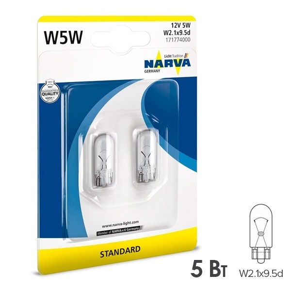 Лампа Narva 17177 (бл.2) W5W 12V-5W (W2,1x9,5d) (блистер 2шт.) 17177 (бл.2)