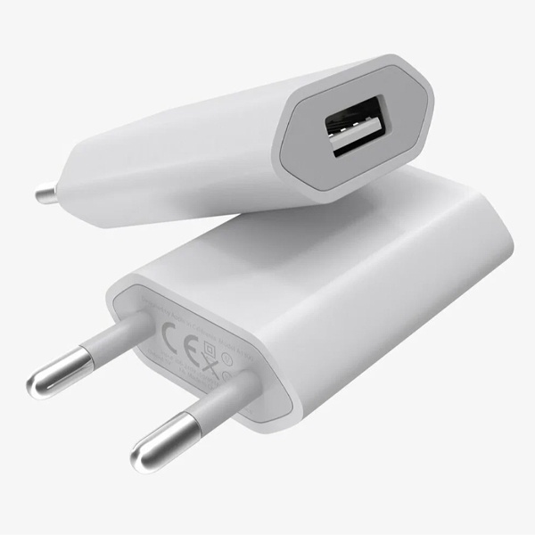 Компактная сетевая зарядка для iPhone и iPod, Ipad. Изготовлена из ударопрочного пластика, имеет 1 USB-порт для подключения внешнего устройства с помощью USB-кабеля.
