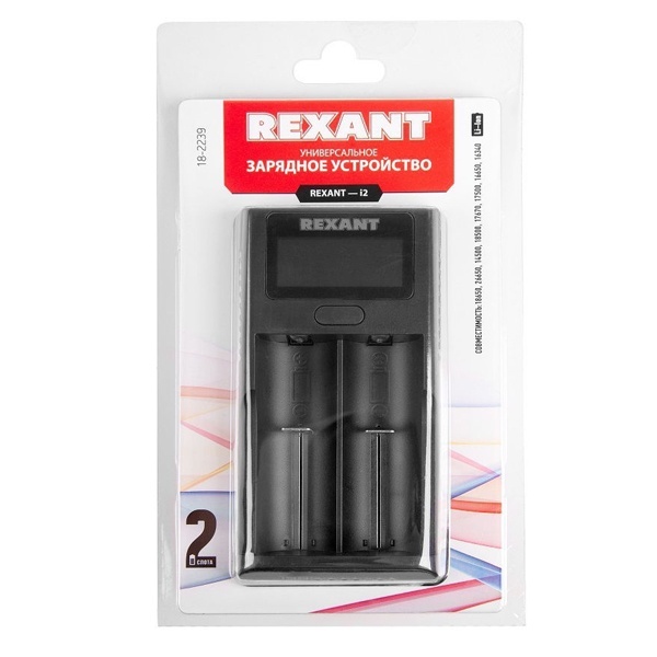 Универсальное зарядное устройство для 2-х АКБ с ЖК дисплеем Rexant i2 18-2239