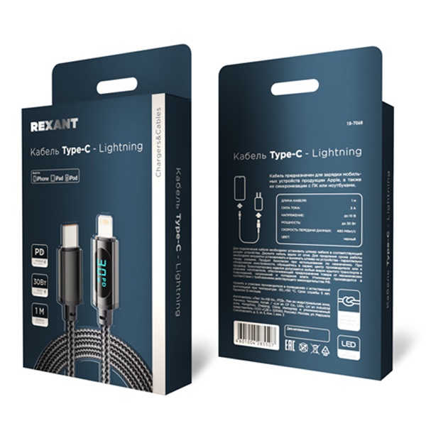 Этот кабель предназначен для быстрой и безопасной зарядки электронных устройств, а также их синхронизации с ПК и ноутбуками. С одной стороны кабеля расположен разъём USB-C, с другой — Lightning, что делает его идеальным решением для пользователей устройств Apple.