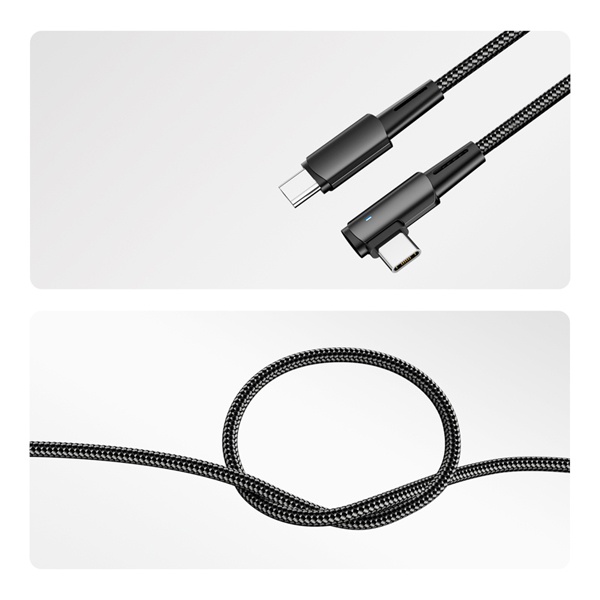 Конструкция кабеля выполнена из прочного и износостойкого нейлонового материала с плотным плетением, устойчивым к скручиванию, перегибам и механическим повреждениям. Черный цвет придаёт кабелю строгий и универсальный вид, подходящий к любой технике.