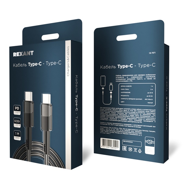 Кабель поддерживает технологию быстрой зарядки Power Delivery (PD) и обеспечивает мощность до 60 Вт при силе тока 3 А — это позволяет быстро и безопасно заряжать даже планшеты и ноутбуки с поддержкой USB-C. Скорость передачи данных достигает 480 Мбит/с, что делает кабель удобным и для зарядки, и для передачи файлов.