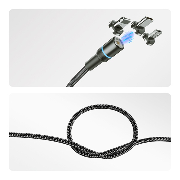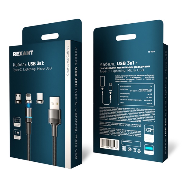 Кабель оснащён магнитными съёмными коннекторами, которые можно постоянно оставлять в портах устройств. Это значительно снижает износ разъёмов и упрощает подключение — просто поднесите кабель к устройству, и магнит надежно зафиксирует соединение.