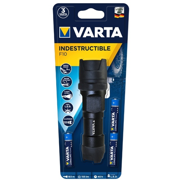 Сверхпрочный, водонепроницаемый, светодиодный фонарь Varta Indestructible F10, 2 режима работы 18700101421