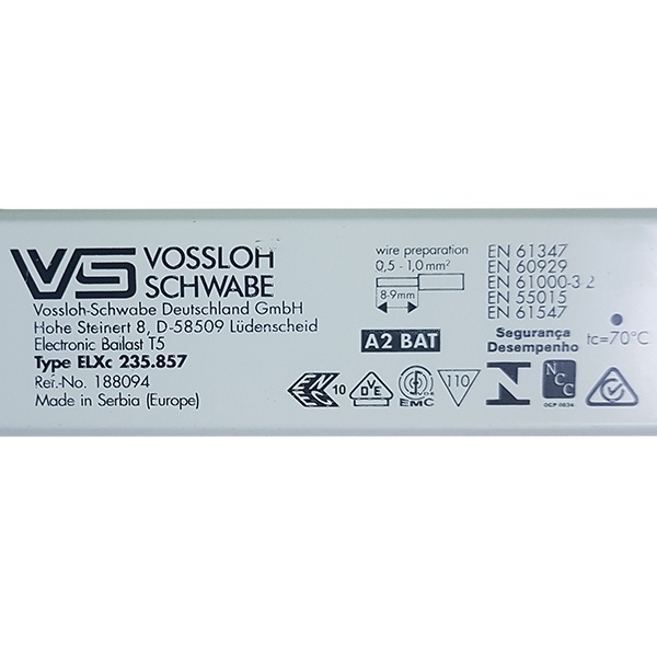Электронный пускорегулирующий аппарат (ЭПРА) Vossloh-Schwabe ELXc 235.857 для 2 люминесцентных ламп T5 с цоколем G5 мощностью 14-35 Ватт. 188094.98