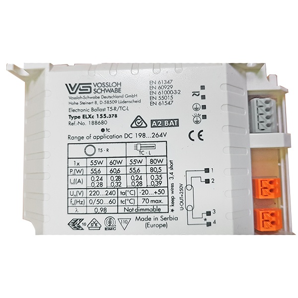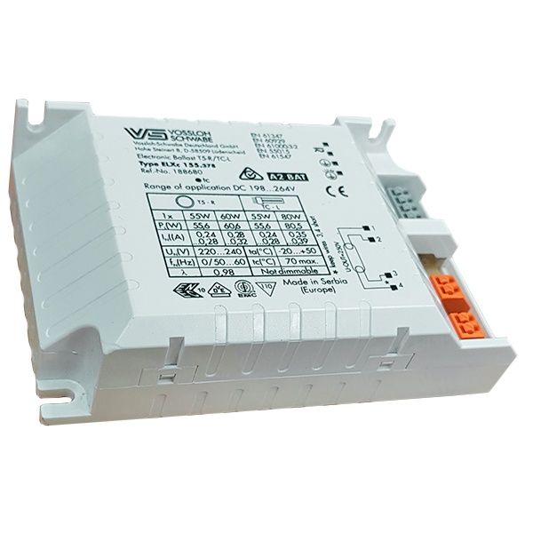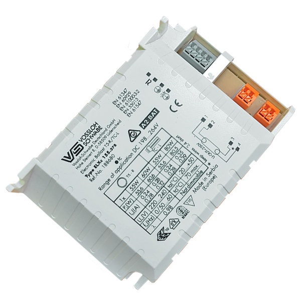 Электронный пускорегулирующий аппарат (ЭПРА) для одной компактной люминесцентной лампы мощностью 55/60/80 Ватт с цоколем 2G11 и 2GX13 188680