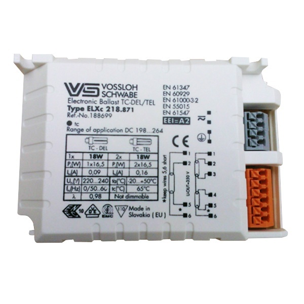 ЭПРА серии ELXc — теплый запуск для компактных люминесцентных ламп. Встраиваемые ЭПРА. Корпус: теплостойкий полиамид. Рабочее напряжение постоянного тока 176-264 В., зажигания 198-264 В. Безвинтовые контактные зажимы. Для высокой частоты включений(более 5 в день).