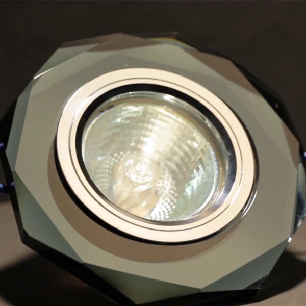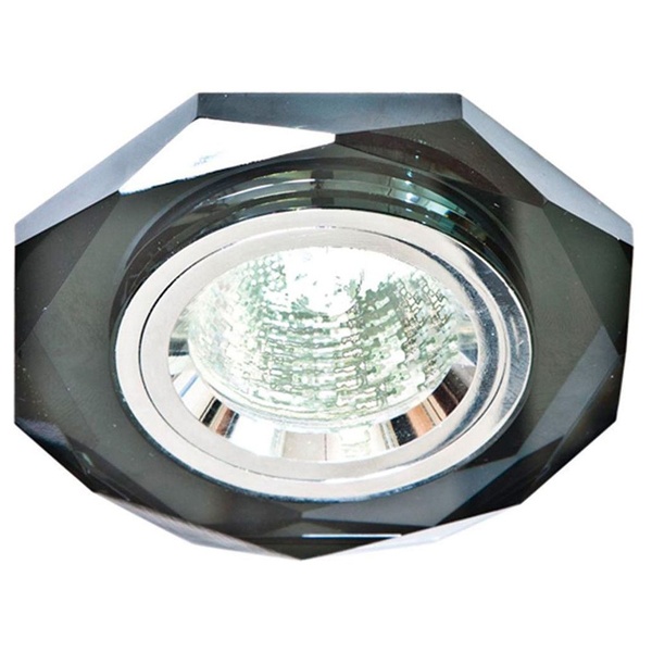 Встраиваемый восьмигранный стеклянный светильник Ферон DL8020-2 под лампу MR16 с цоколем G5.3 мощностью до 50 Вт серый цвет. 19704
