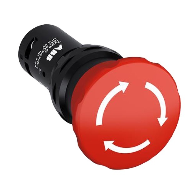 Кнопка управления с фиксацией CE4T-10R-02 без подсветки (красная) 2Н.З.контакта для аварийного отключения (отпускание с поворотом) ABB 1SFA619550R1051